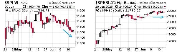 What happens is when the high beta stocks make a 20-day low together with the low volatility stocks the whole market (the whole S&P 500) tends to catch a reasonable rally.