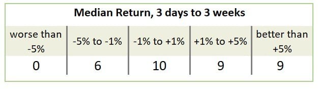 It’s not a huge sample size, but it still can give us something interesting to chew on. The next few days may or may not turn out well. However, history is more bullish if we look 2-3 weeks into the future.