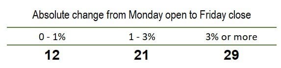 That last bullet point, we cited the average and median. However, there are some really violent swings in both directions. If we look at the absolute change for the week and don’t worry about which direction, the numbers tell a different story.