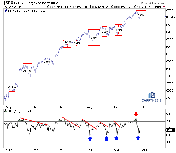 Posted after the market closed on Thursday, he pointed out that the 3 day decline had already become an “average” pullback. (If you have already forgotten, the market bounced up on Friday.)