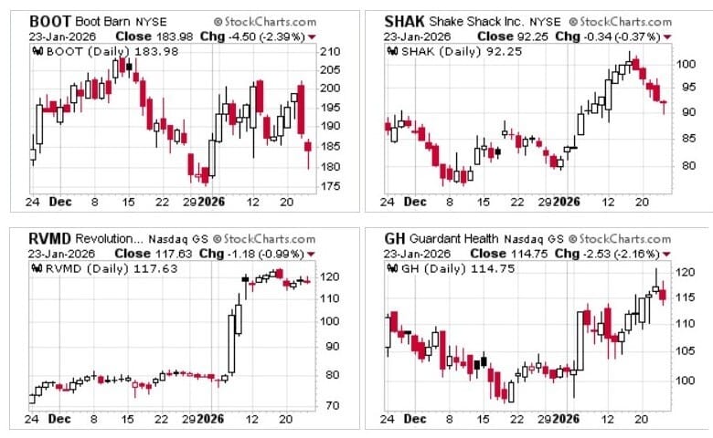 Stocks highlighted here each week are not recommendations to buy or sell. They are provided as ideas for swing traders to follow up on with their own research.